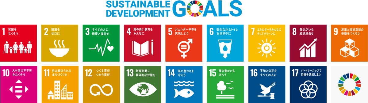 当社は『海洋・地球環境保全』を環境理念としており、SDGsの17のゴールは私たちの事業活動に欠かせない共通の目標と同じであると考えています。2030年の目標達成に向けて、社員ひとりひとりが責任を持って行動し、SDGsに関する取組を推進することにより、継続可能な社会の実現への貢献に取り組んでいきます。